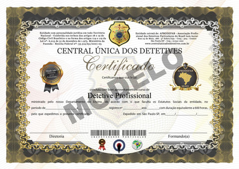 Leia com atenção as informações a seguir, pois a partir de agora, você está entrando no fascinante mundo dos mistérios e do sucesso econômico-financeiro. Inicialmente, iremos apresentar a nossa organização, fundada em 2 de Abril de 1.981 como APRODEPAB-ASSOCIAÇÃO PROFISSIONAL DOS DETETIVES PARTICULARES DO BRASIL. em 4 de janeiro de 1.988 foi firmado convênio com à CENTRAL ÚNICA FEDERAL DOS DETETIVES e em março de 2019 transferida para Central Única dos Detetives (Entidades com ramificações desde 1.961 (Embrail - Empresa Brasileira de Investigações Ltda.). Nossa entidade é a principal organização do ramo em nosso país. Conta com vários departamentos, principalmente os Departamentos de Investigações Confidenciais e Departamento de Ensino, este último já tendo formado os principais detetives particulares que militam na área em todo o território nacional. Nossos cursos já fizeram a alegria de muitos brasileiros, que hoje estão trabalhando na profissão e ganhando muito dinheiro. A profissão de Detetive não é muito antiga no Brasil, sendo por esse motivo muito requisitada por clientes, tanto de pessoas físicas como jurídicas. É uma profissão como poucas. Detetive Particular é como um advogado, trabalha para clientes e em serviços que não podem e não devem ser executados por detetives policiais, os quais, como funcionários públicos, somente podem trabalhar para o Estado. A profissão é amplamente amparada por legislações federais, estaduais e municipais e, principalmente pela Constituição da República Federativa do Brasil. Nossos cursos podem ser concluídos tanto por correspondência como em salas de aula. Para ambos os métodos, a documentação fornecida no final do curso é a mesma. Ela consiste no CERTIFICADO (DIPLOMA), CARTEIRA DE IDENTIFICAÇÃO PROFISSIONAL, REGISTRO NO REGISTRO NACIONAL DOS PROFISSIONAIS DE INVESTIGAÇÕES E SEGURANÇA, CERTIFICADO DE ASSOCIADO DE NOSSA ENTIDADE, CARTEIRA DE IDENTIFICAÇÃO SOCIAL e ATESTADO DE QUALIFICAÇÃO PROFISSIONAL. Com essa documentação, o recém formado, após realizar o seu registro no Cadastro do Contribuinte Mobiliário da Prefeitura Municipal do local onde reside, já poderá iniciar imediatamente na profissão, como DETETIVE PARTICULAR AUTÔNOMO. Dispondo de um pequeno capital, o novo detetive particular formado por nossa escola já terá meio caminho andado para ter sucesso, principalmente se dispor de um telefone, que poderá ser fixo ou celular. Alguns detetives em início de carreira, orientado por nossa escola, utilizam o sistema de mala direta, isto é, enviando circulares oferecendo seus serviços à advogados, comerciantes, industriais, políticos etc. O retorno é certo. Apesar de não contarmos com uma tabela oficial de preços dos serviços profissionais, em vista de fixar preços nessa área tornar-se difícil, pois dependerá das circunstâncias e do teor do problema apresentado pelo cliente, os detetives particulares, principalmente os de São Paulo, costumam cobrar uma média de R$.350,00 a R$.500,00 por dia de serviço (campanas), principalmente para a solução de problemas conjugais. Em nossos cursos, os alunos aprenderão tudo sobre a arte da investigação particular moderna. Aprenderão a arte da “campana” à pé, com veículos, a “campana” fixa, os requisitos do detetive, manobras e ardís de um “acampanado”, a eletrônica nas investigações, variedades e usos dos equipamentos de investigações, a fotografia na investigação, as instruções reservadas aos detetives particulares, os mandamentos dos detetives particulares, estudo da vida pregressa de uma pessoa, instruções sobre manejos de arma de fogo, espionagem e contra-espionagem, campo de atuação do detetive particular, como montar um escritório de investigações, princípios básicos de uma investigação, etc, etc.